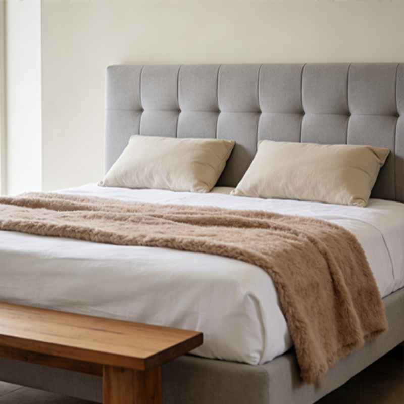 Prosta i czysta pościel nadaje ton minimalistycznej estetyce sypialni.